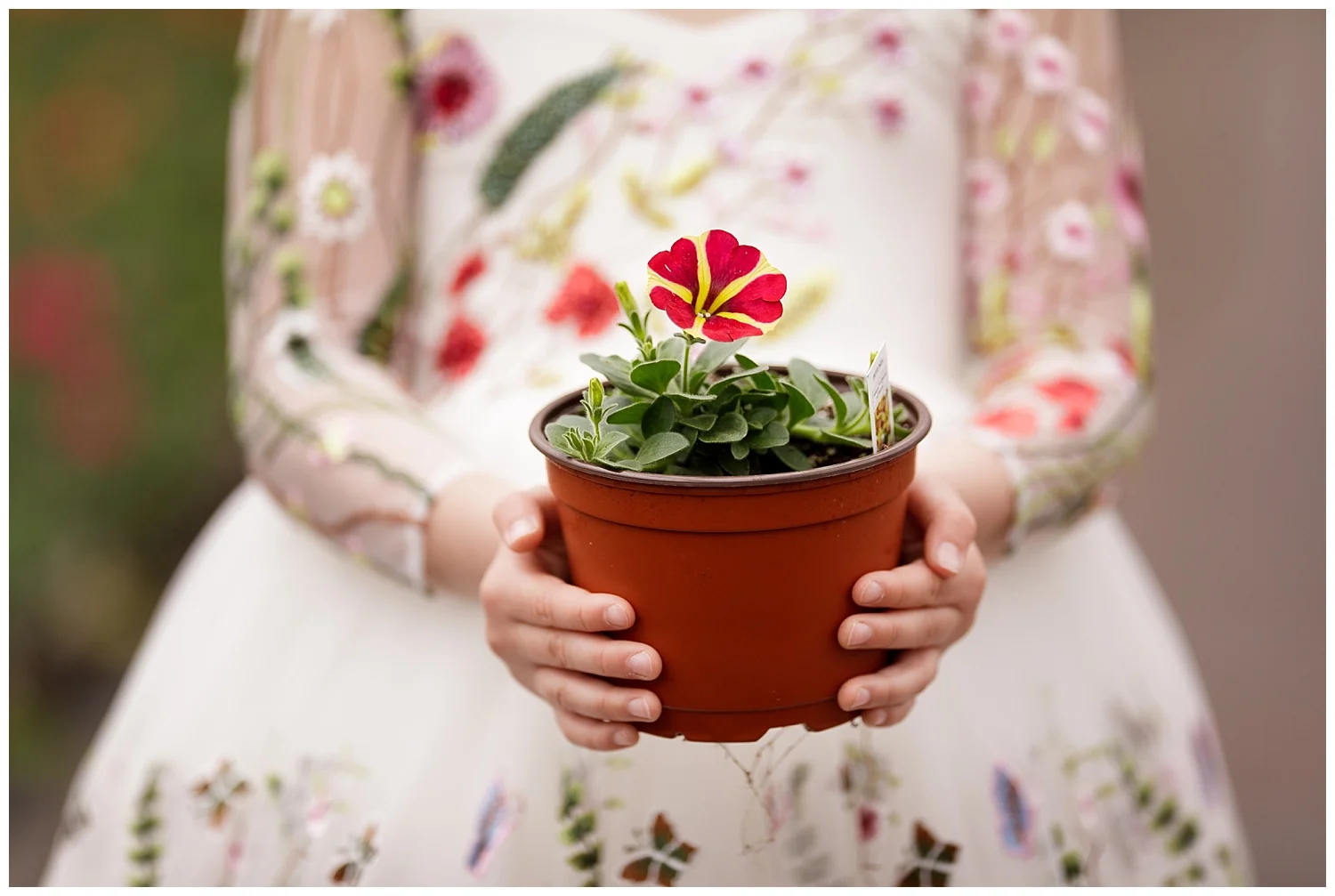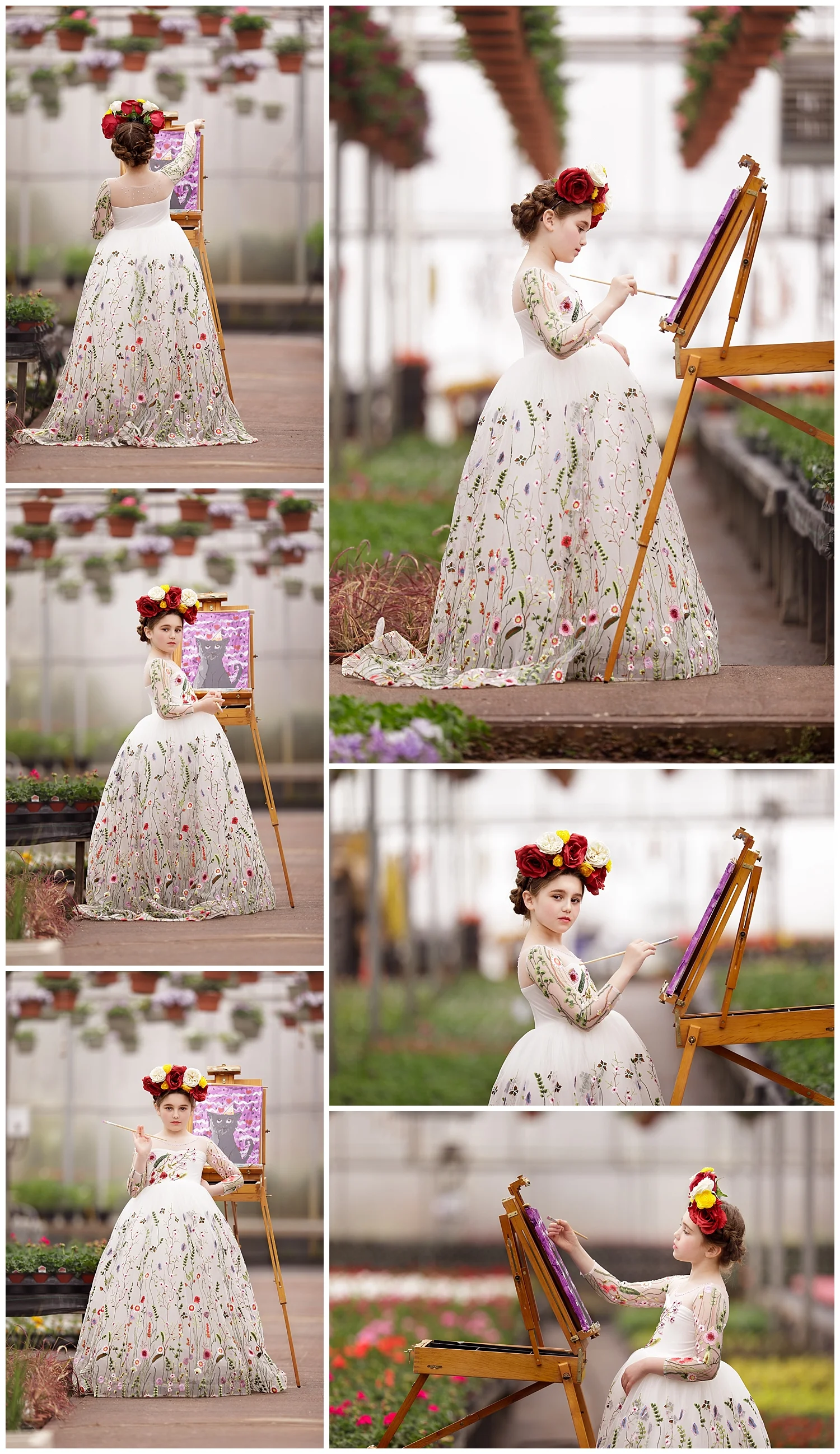 So rather than wait for the warmth and flowers, we went to the warmth and flowers. We went to Clark Farms' Matunuck location, where their giant greenhouse was the setting of one of my favorite shoots last spring. This gorgeous dress matched the flowers in the greenhouse. We even went a little further, channeling the talented and beautiful artist Frida Kahlo, who loved her gardens. The always-beautiful princess, Miss M, did an amazing job as Frida.