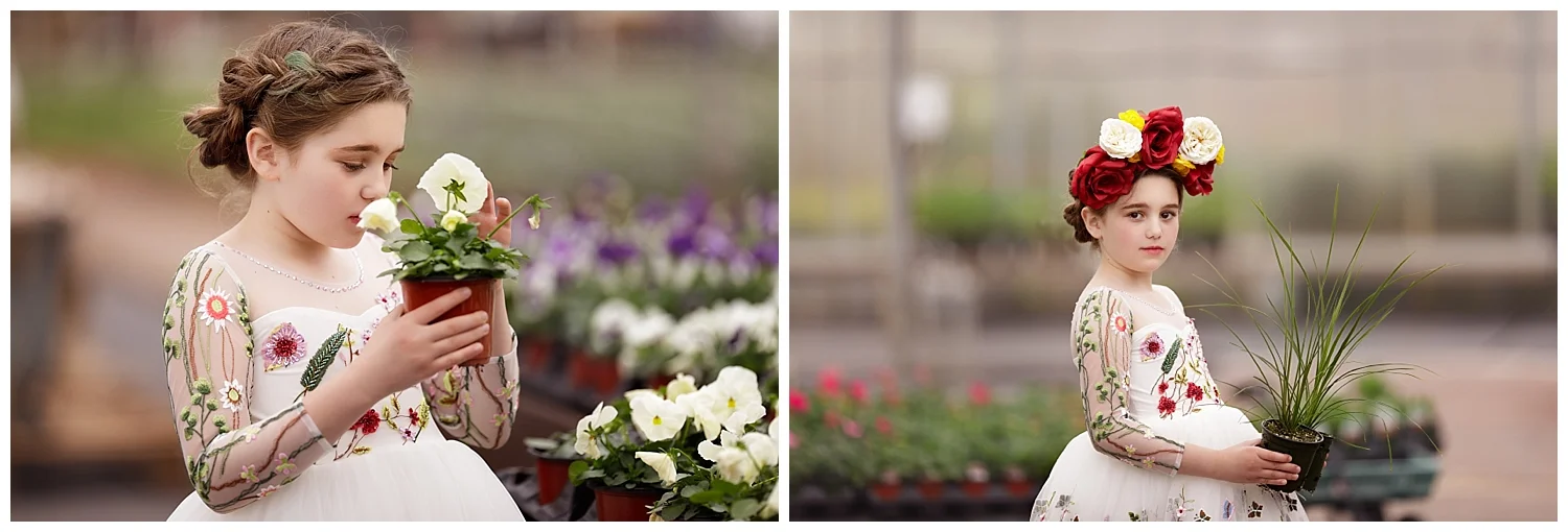 Frida In The Clark Farms Greenhouse • Children's Photographer Southern RI