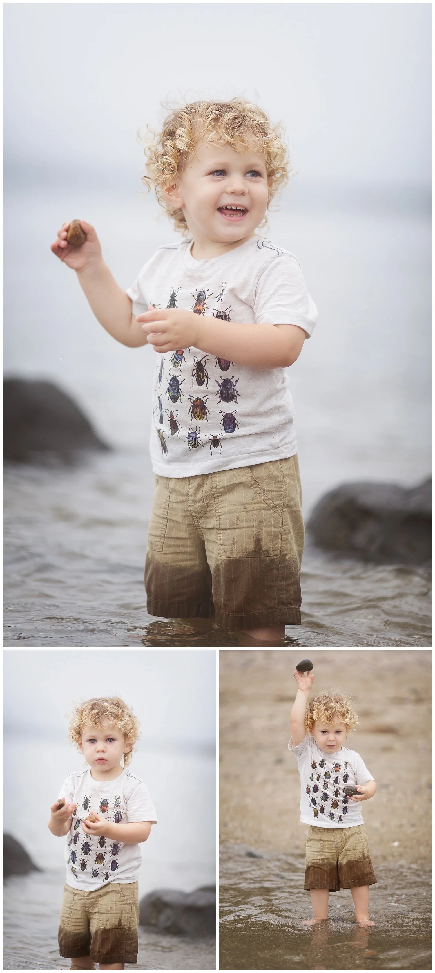 Once there, Mr. S went right for the rocks. This kid has quite the arm! We also played with seaweed and I even got an opportunity to stand thigh-deep in water to take some photos. Whatever it takes! Capturing little ones in their element doing what they like and having fun makes for some of the best photos!