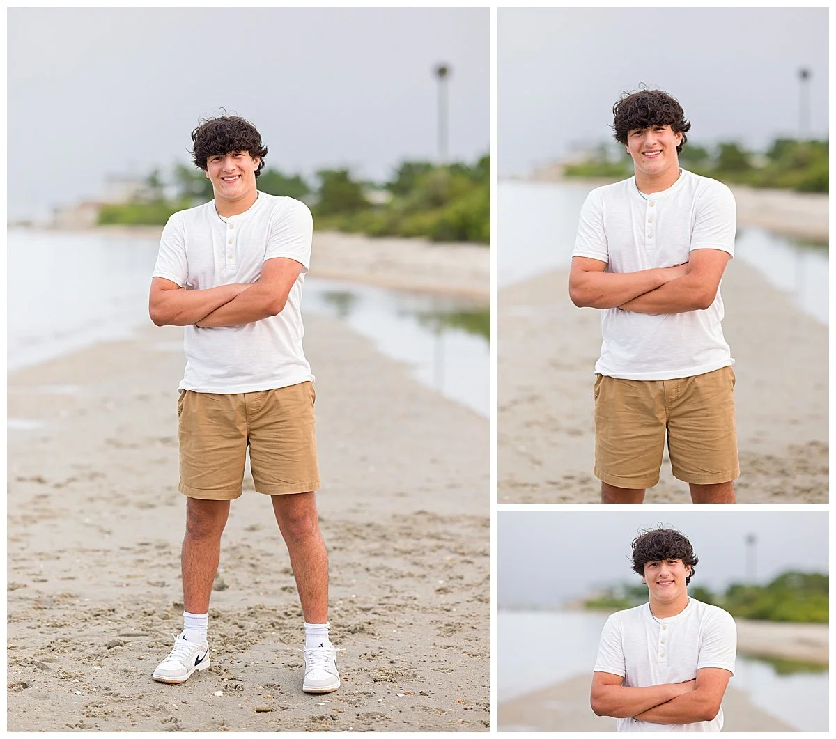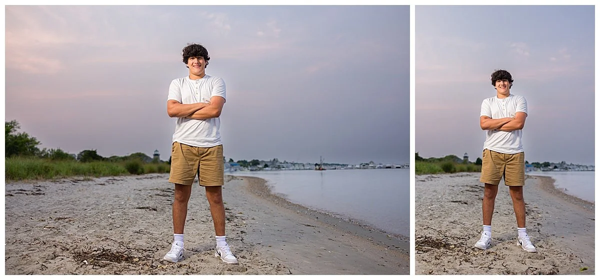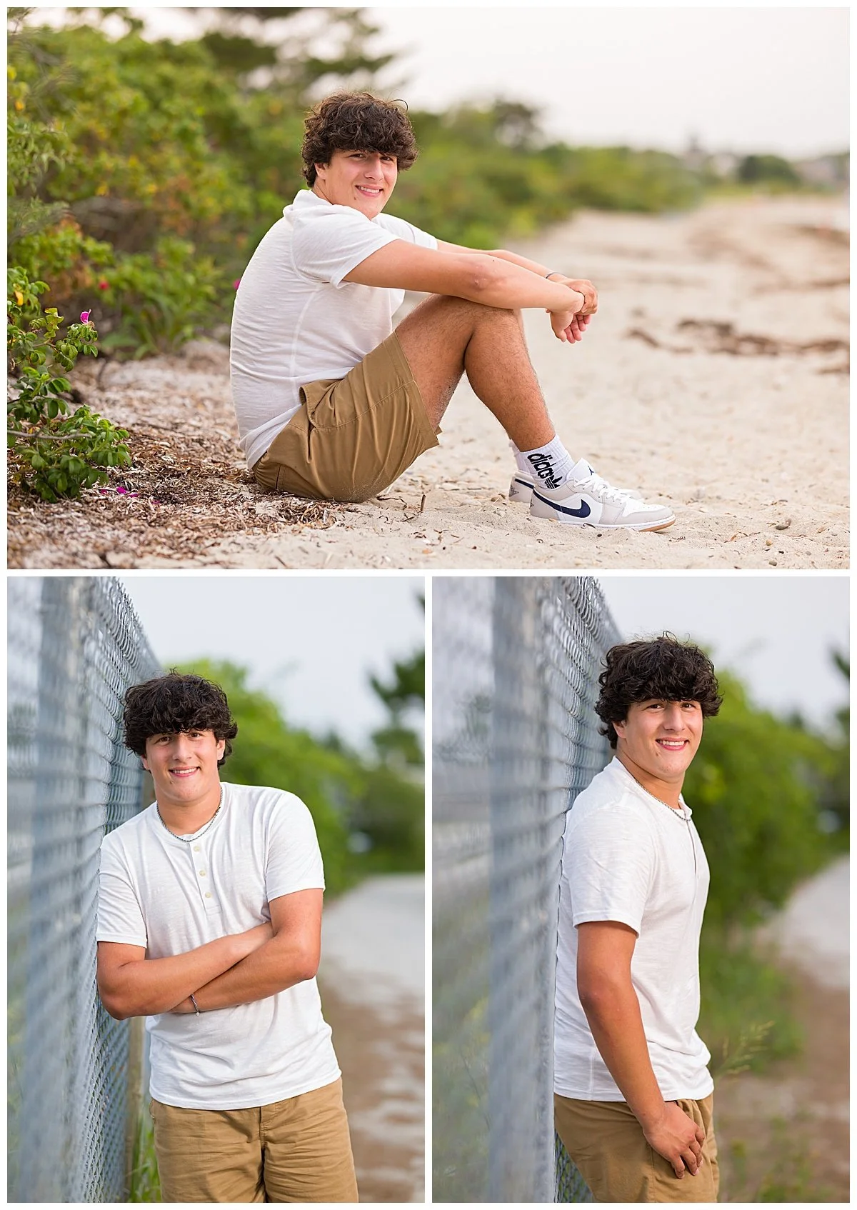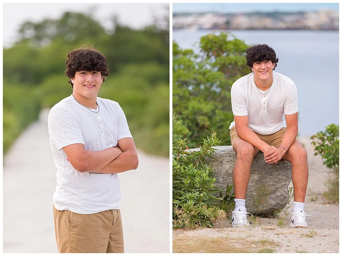 I met Brayden, a South Kingstown High School class of 2026 senior, and his mom at Dog Beach in Jerusalem. I love taking photos there because besides the beach, it’s got some other buildings and a path, and some greenery that are fabulous for photos. I was super excited when Brayden wanted to have his senior portraits taken there.