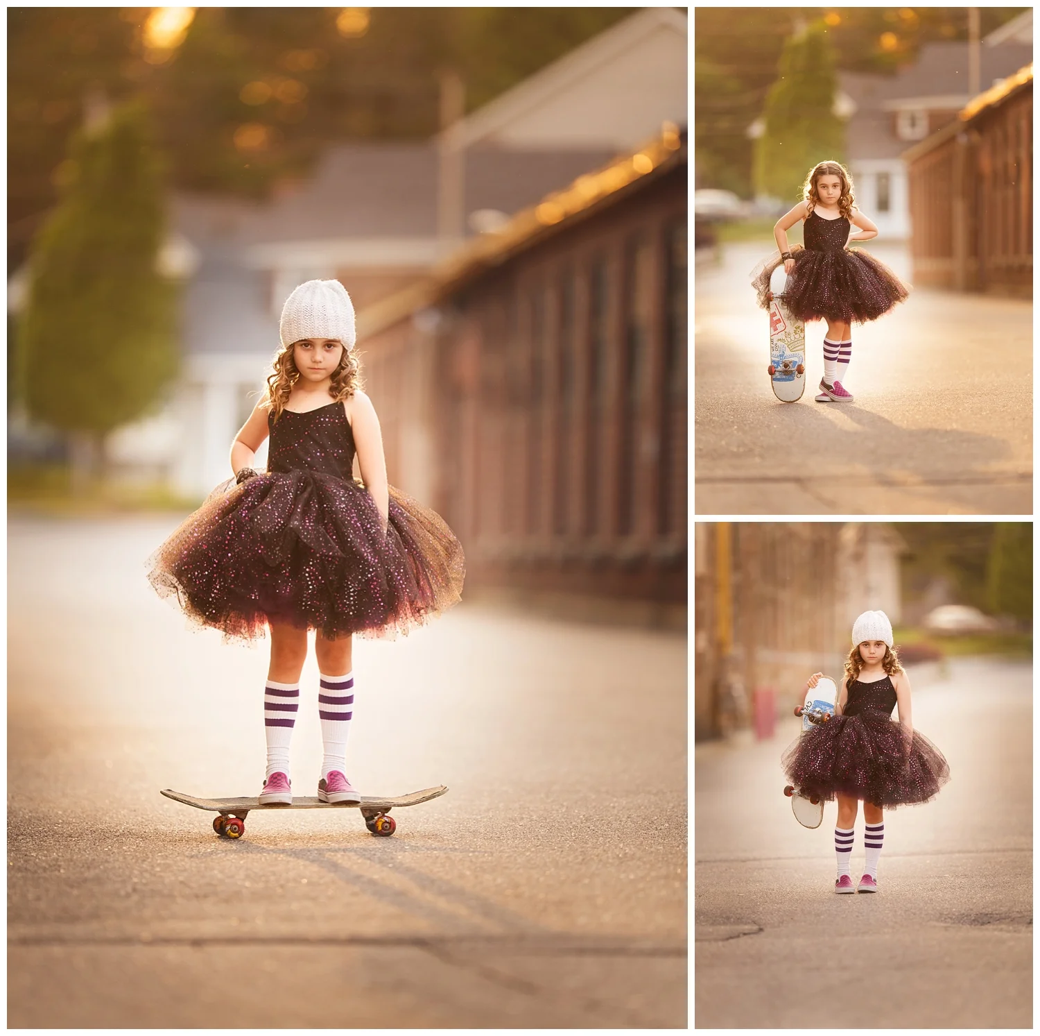 What do you get when you combine one girl, one sparkly dress, a pair of Vans, and a skateboard? A super fun photo session, that's what!