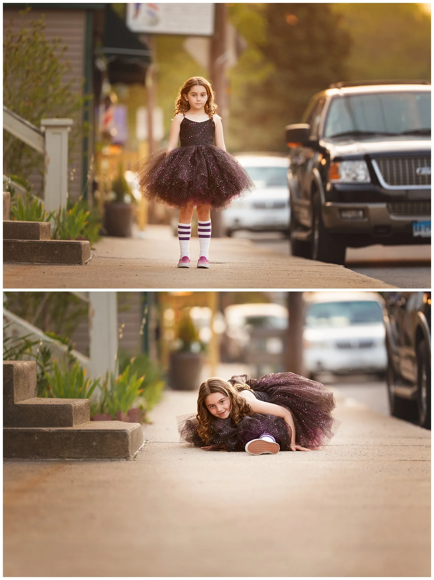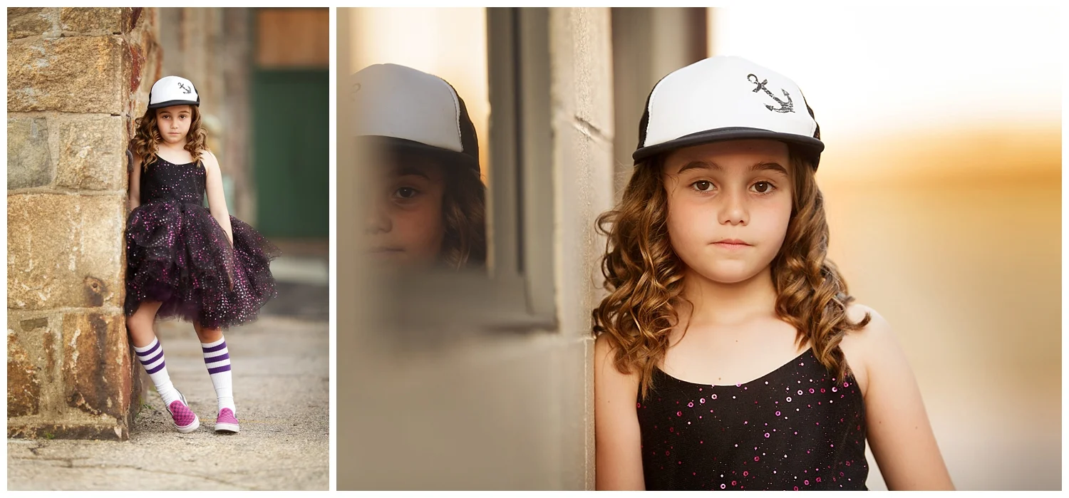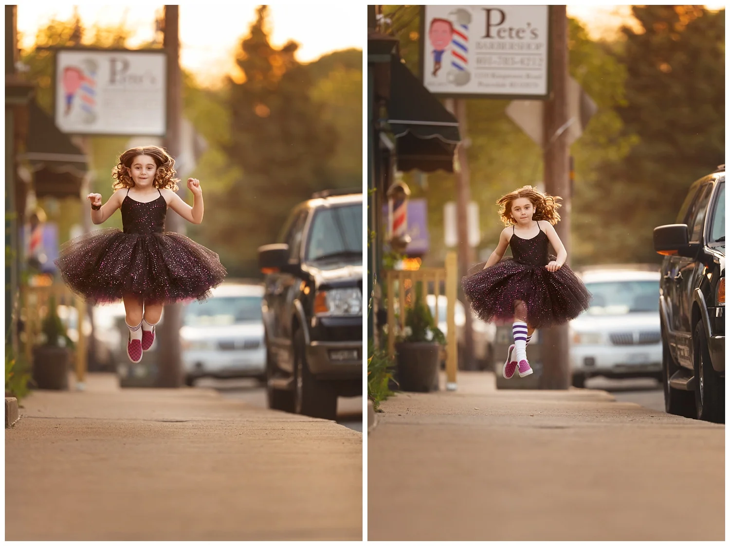 My job as a Rhode Island children's photographer is constantly fun, and I get to meet new people and shoot in all sorts of fun locations. This recent session was a perfect example of all of that. The sparkly princess dress (just one of the dresses available for my upcoming princess sessions) was a perfect fit for Miss M, and it absolutely matched her personality. Princesses come in all types and are in all locations. Some are in the forest, some are amongst the flowers, and some come hang out in Peace Dale with their skateboard, which is what Miss M did. She skated around the Palisades Mill, wore her hat from Drift Surf, and posed and jumped in Peace Dale flats right in front of PJ's Pizza and Pete's Barber Shop. She even did a split right on the sidewalk!